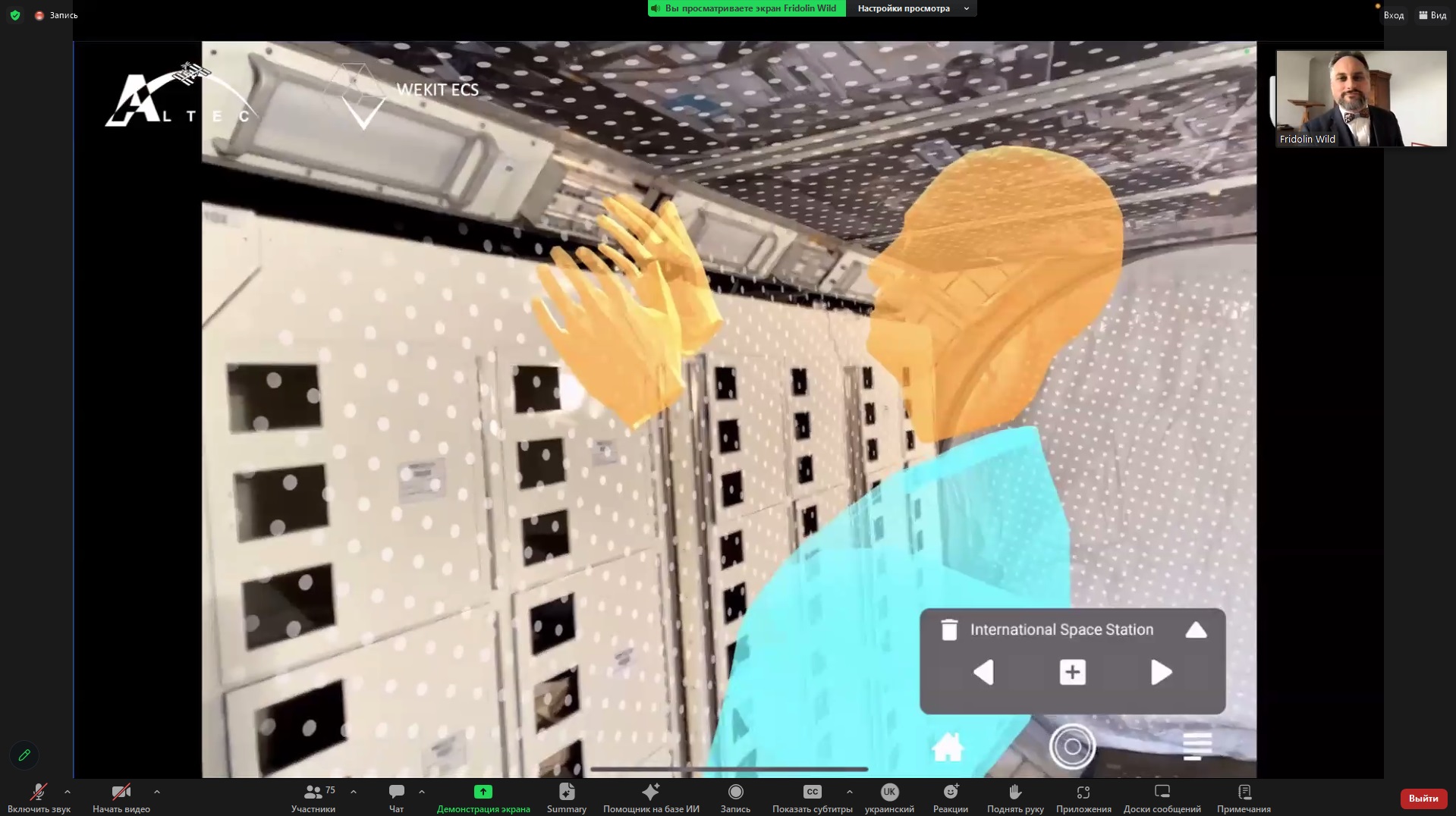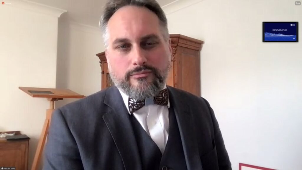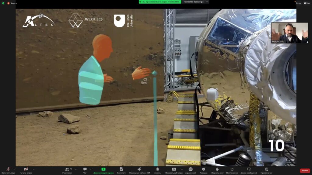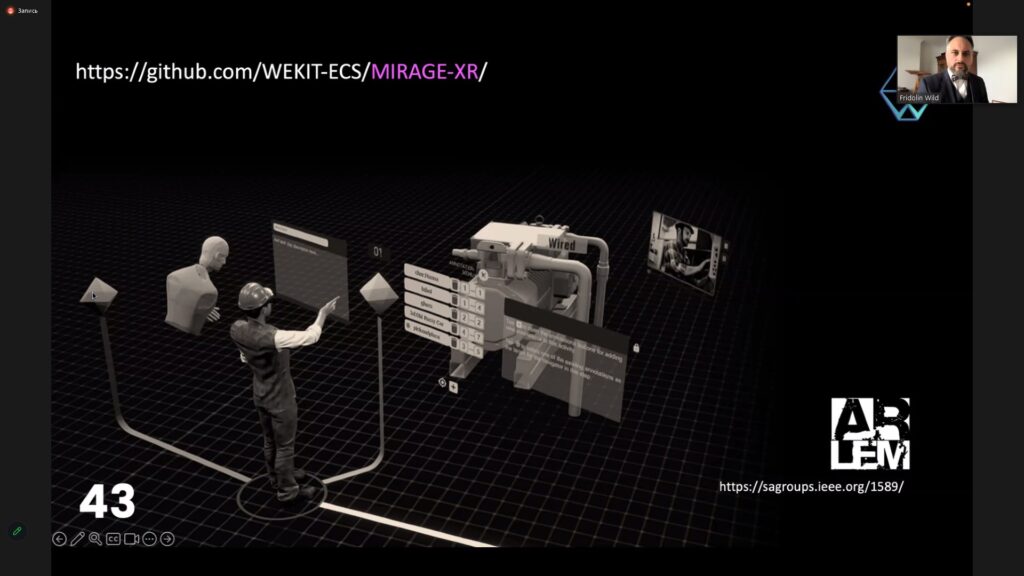 Презентував наробки professor at the Institute of Educational Technology of The Open University, а також leading the Performance Augmentation Lab (PAL) Fridolin Wild. Під час заходу учасники обговорили пріоритетні напрями розвитку технологій XR (Extended Reality), а також застосування методів і засобів AI (Artificial Intelligence) для розширення можливостей технологій віртуальної реальності.